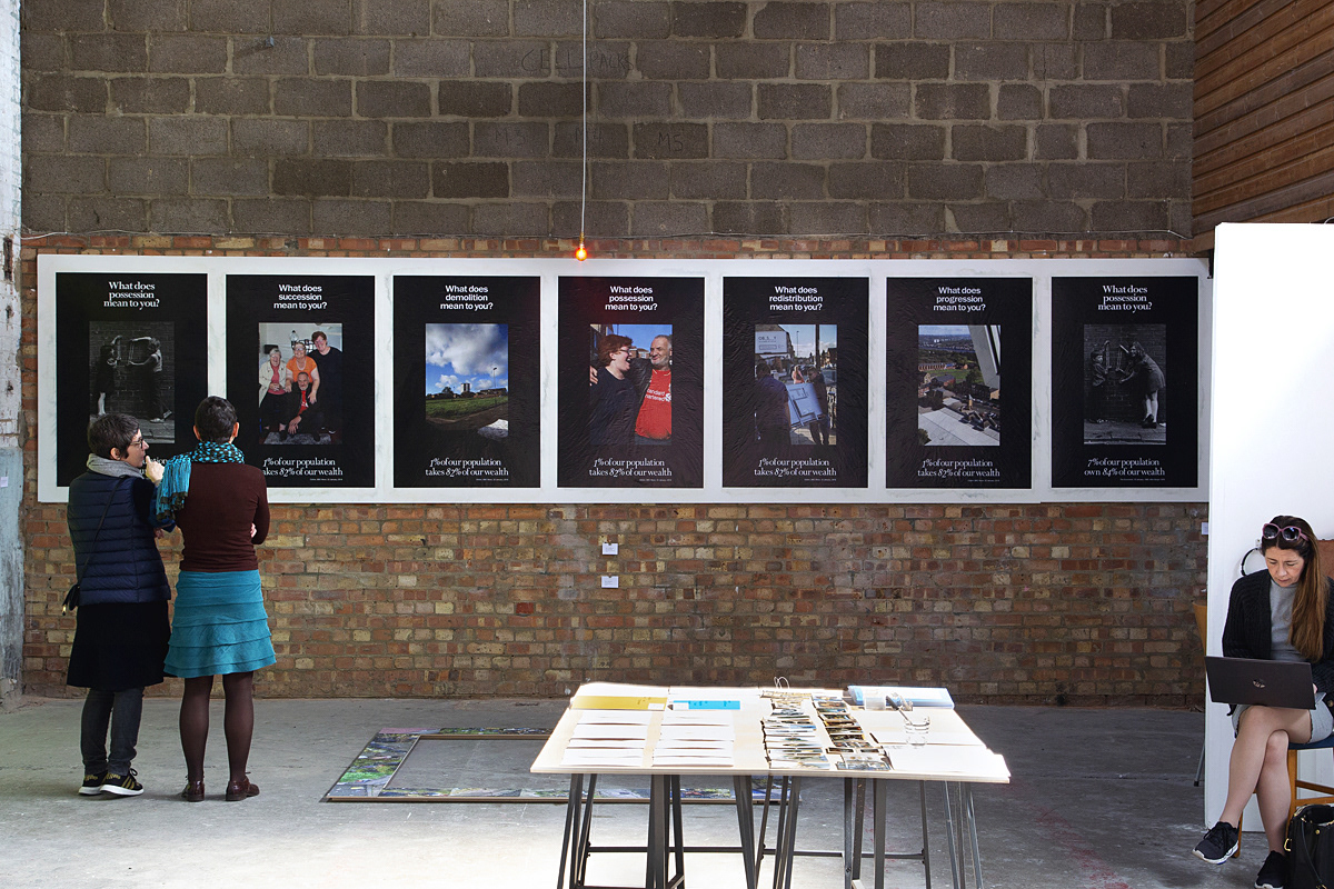 Making a series of seven posters in the same format, I explore the notion of 'possession' from today's perspective, relating and updating my own historical connections. My previously anonymous subjects come alive, and dry statistics of wealth distribution reflect back and forth across a forty three year span, inviting further critical interpretation.